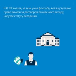Фізична особа, якій відступлено право вимоги за договором банківського вкладу, набуває статусу вкладника лише у випадку укладення такою особою договору банківського вкладу (депозиту) або договору банківського рахунку, а також якщо такі договори укладено на її користь.