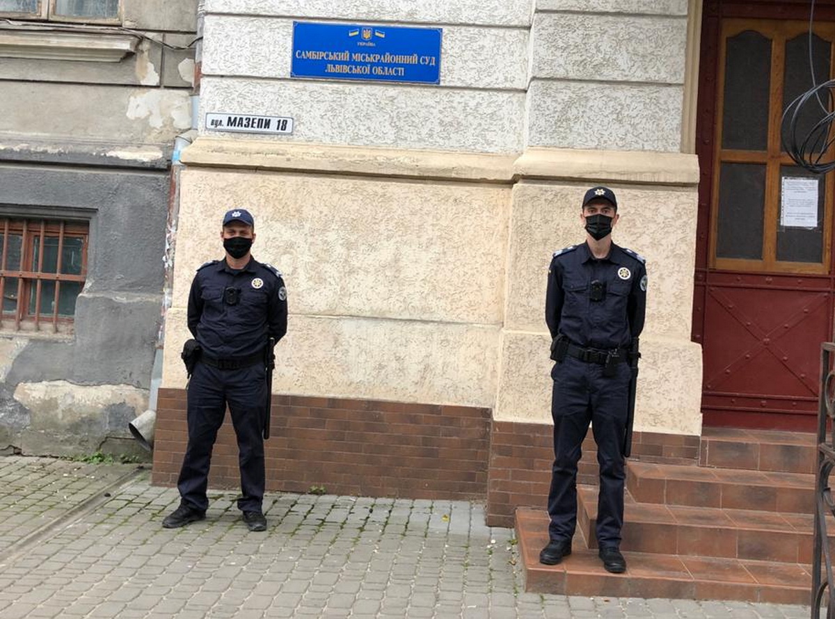 Сьогодні ж співробітники Територіального управління Служби судової охорони у Львівській області розпочали забезпечення охорони та підтримання громадського порядку в Самбірському міськрайонному суді Львівської області.