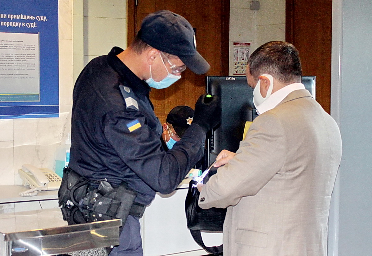 Судові охоронці несуть службу в захисних масках, окулярах і рукавичках, а кожний пункт пропуску до судової установи забезпечений засобами для дезінфекції рук та предметів.