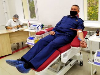 Дехто з охоронців завітав до обласної станції переливання крові вперше, а підполковник Служби судової охорони Едуард Лужецький сьогодні здав кров 55-й раз.