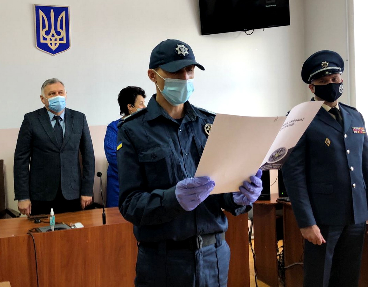 Судових охоронців, які відсьогодні забезпечуватимуть безпеку судової установи та підтримуватимуть у ній належний громадський порядок, голові Косівського районного суду Володимирові Гордію та колективу установи особисто представив начальник Територіального управління Служби судової охорони у Івано-Франківській області полковник Служби судової охорони Андрій Маланій.
