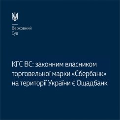 26 листопада 2020 року КГС ВС ухвалив постанову в справі № 910/11005/16 за позовом ПАТ "Сбербанк Росії" до Міністерства розвитку економіки, торгівлі та сільського господарства України та ПАТ "Державний ощадний банк України" про визнання недійсним свідоцтва України на знак для товарів і послуг "Сбербанк" за свідоцтвом України від 10.09.2007 № 82116.