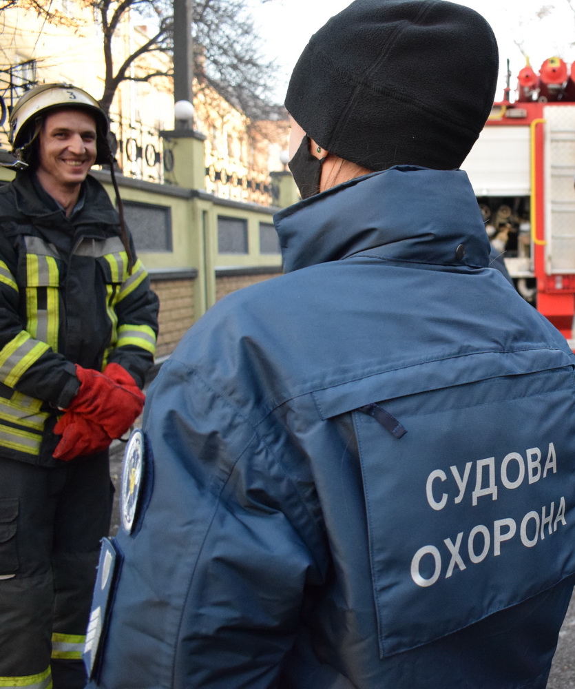 Разом із рятувальниками співробітники Служби судової охорони відпрацювали безпомилковий порядок дій у разі виникнення пожежі та правильної евакуації постраждалого внаслідок такої ситуації.