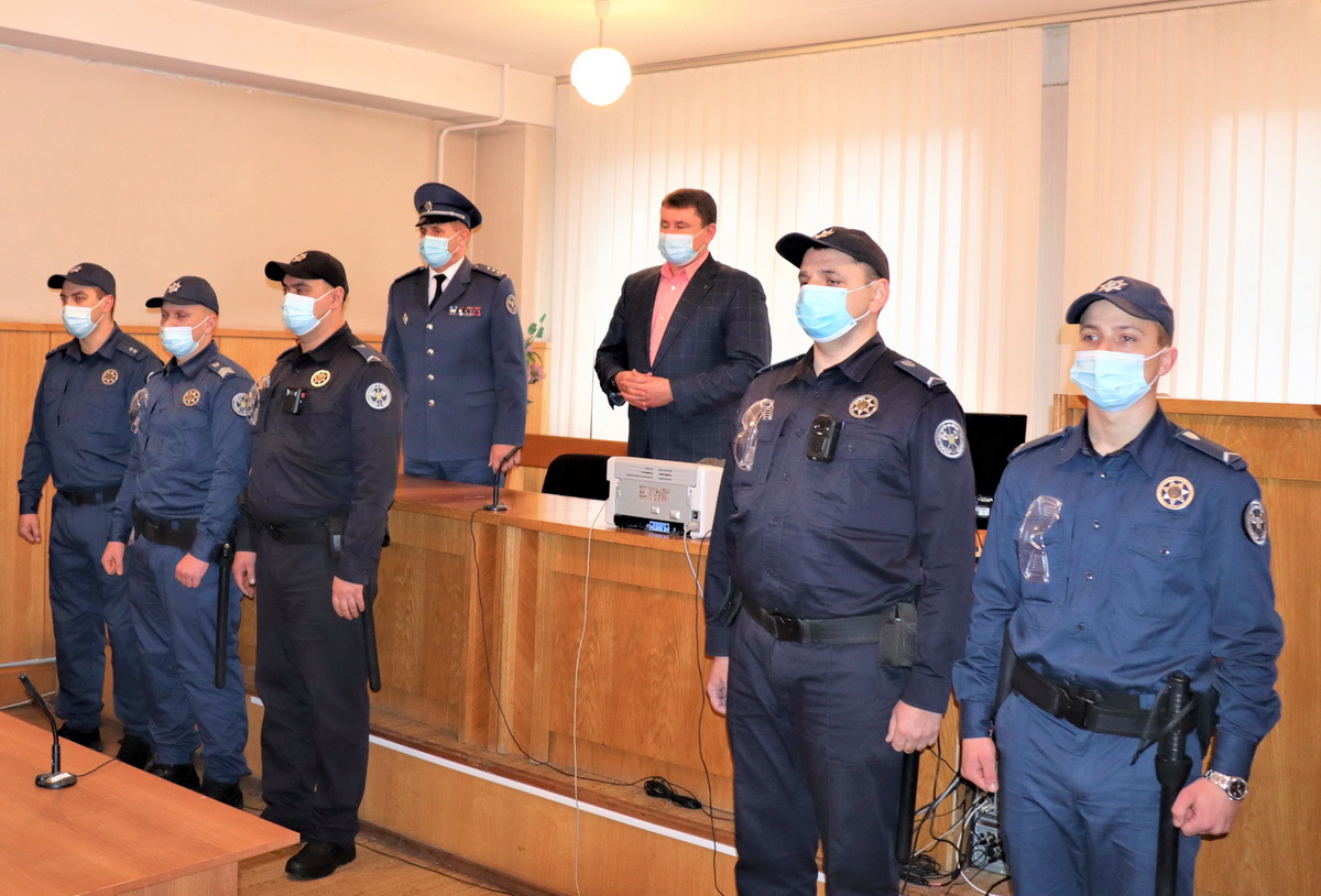 Начальник Територіального управління Служби у Дніпропетровській області полковник Служби судової охорони Сергій Швачка представив колективові суду своїх підлеглих, які здійснюватимуть охорону та забезпечуватимуть безпеку в судовій установі. Водночас тимчасовий виконувач обов’язків голови суду Геннадій Калініченко привітав нових співробітників із початком несення служби.