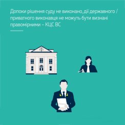 Належним доказом вжиття усіх передбачених Законом заходів з примусового виконання рішення суду, що свідчить про повноту виконавчих дії, є повне виконання рішення суду. Невиконання рішення суду, яке набрало законної сили, свідчить про неповноту виконавчих дії, що є недопустимим з огляду на положення ст. 129-1 Конституції України щодо обов’язковості судових рішень. ВС також послався на положення ст. 6 Конвенції про захист прав людини і основоположних свобод і відповідну прецедентну практику Європейського суду з прав людини.