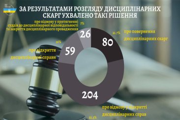 Дисциплінарними палатами прийнято 13 рішень про притягнення до дисциплінарної відповідальності 13 суддів та 6 – про відмову у притягненні до дисциплінарної відповідальності.