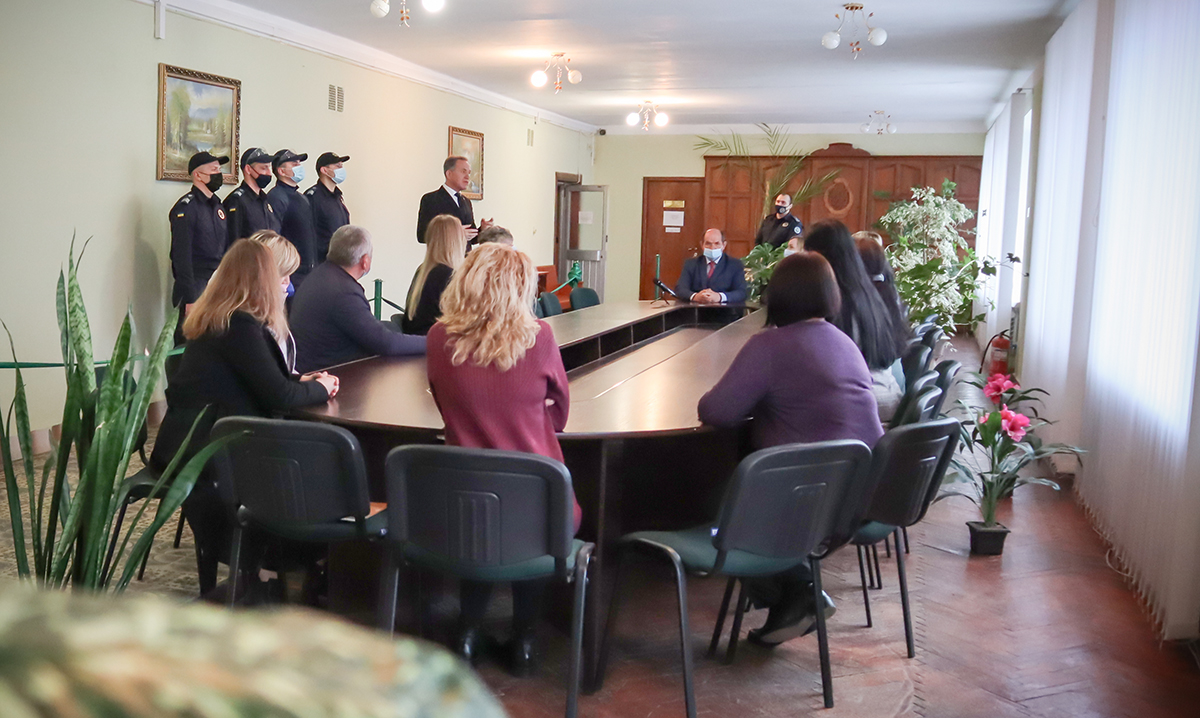 Начальник Територіального управління Служби у Хмельницькій області полковник Служби судової охорони Сергій Мельник представив колективові суду співробітників, які віднині охоронятимуть та підтримуватимуть громадський порядок у будівлі суду.