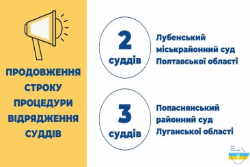 Вища рада правосуддя відповідно до рішень від 15 квітня 2021 року № 858/0/15-21 та № 860/0/15-21 продовжила строк надання суддями згоди на відрядження до Лубенського міськрайонного суду Полтавської області та Попаснянського районного суду Луганської області до 25 квітня 2021 року.
