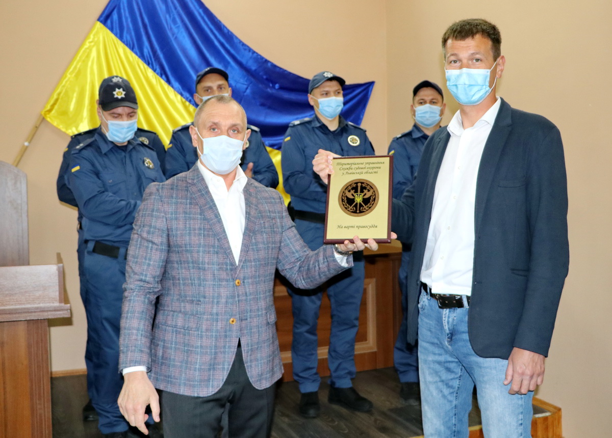 Співробітників Служби, які забезпечуватимуть у суді охорону, безпеку та громадський порядок, колективу установи представив начальник Територіального управління Служби у Львівській області полковник Служби судової охорони Володимир Семенина. Він також провів інструктаж щодо особливостей несення служби й акцентував увагу, зокрема, на попереджені спроб незаконного пронесення в приміщення суду заборонених предметів, вжитті заходів щодо припинення проявів неповаги до суду та порушень громадського порядку, забезпечення дотримання карантинних заходів.