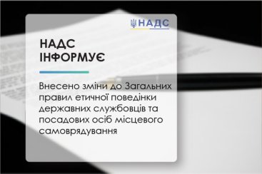 Наказом НАДС від 28 квітня 2021 року № 72-21 внесено зміни до Загальних правил етичної поведінки державних службовців та посадових осіб місцевого самоврядування. Зазначений наказ зареєстрований в Міністерстві юстиції України 20 травня 2021 року за № 668/36290 та опубліковано в Офіційному віснику України (№42).