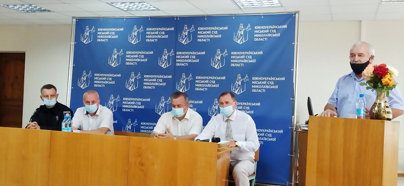 Начальник Територіального управління Служби в Миколаївській області полковник Служби судової охорони Сергій Драчевський представив колективові судової установи своїх співробітників Служби, які відсьогодні виконуватимуть завдання з охорони і забезпечення безпеки суду.