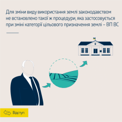 Велика Палата ВС відступила від висновку про те, що зміна виду використання землі в межах її цільового призначення повинна проводитися в порядку, встановленому для зміни цільового призначення такої землі, викладеного у постановах Верховного Суду України, постанові Великої Палати ВС та низці постанов КЦС ВС