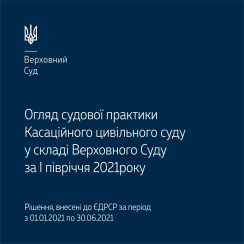 Верховний Суд опублікував зведений огляд судової практики Касаційного цивільного суду у складі Верховного Суду за І півріччя 2021 року, в якому викладено найважливіші правові позиції, систематизовані за різними категоріями справ.