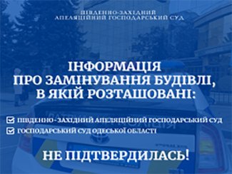 Південно-західний апеляційний господарський суд поінформував про відновлення роботи суду після повідомлення про замінування, яке не підтвердилося.