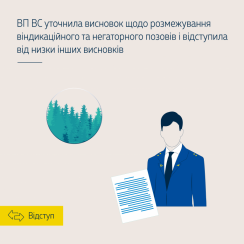 Рішенням суду першої інстанції, залишеним без змін постановою апеляційного суду, у задоволенні позову відмовлено. Касаційний цивільний суд у складі Верховного Суду передав справу на розгляд Великої Палати ВС. КЦС ВС, посилаючись свою практику та висновки ВП ВС, зауважив, що для відновлення права власності держави на незаконно вилучені землі лісового фонду ефективним способом захисту є віндикаційний позов. Це не узгоджується з позицією Касаційного господарського суду у складі ВС, який у низці справ дійшов протилежного висновку, зазначивши, що позовну вимогу про зобов’язання повернути земельну ділянку, зайняту з порушенням положень ЗК України та ЛК України, слід розглядати як негаторний позов.