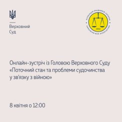 8 квітня 2022 року Верховний Суд спільно з Асоціацією правників України проведе онлайн-зустріч з Головою Верховного Суду Всеволодом Князєвим на тему «Поточний стан та проблеми судочинства у зв’язку з війною». Захід розпочнеться о 12:00.