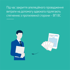 При цьому ВП ВС констатувала, що відповідно до ЦПК України звернення з апеляційною скаргою є реалізацією стороною принципу забезпечення права на апеляційний перегляд справи та принципу диспозитивності, тобто права на відмову від апеляційної скарги. Водночас ЦПК України передбачає загальний принцип відшкодування судових витрат.