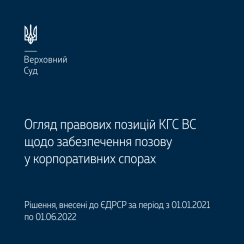 Пропонуємо до вашої уваги огляд правових позицій Касаційного господарського суду у складі Верховного Суду щодо забезпечення позову в корпоративних спорах (за період із 1 січня 2021 року по 1 червня 2022 року).