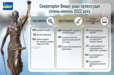 Протягом семи місяців 2022 року секретаріатом Вищої ради правосуддя розглянуто 1024 звернення громадян та 140 запитів на інформацію.