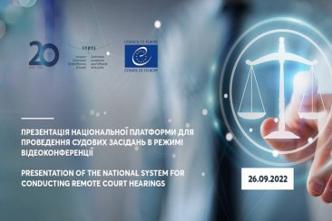 Член Вищої ради правосуддя Інна Плахтій та представниця державного підприємства «Центр судових сервісів» Олександра Царьова презентували експертам Проєкту Ради Європи «Підтримка судової влади України в забезпеченні кращого доступу до правосуддя» та Європейської комісії з питань ефективності правосуддя (CEPEJ) вітчизняну платформу для проведення судових засідань у режимі відеоконференції.