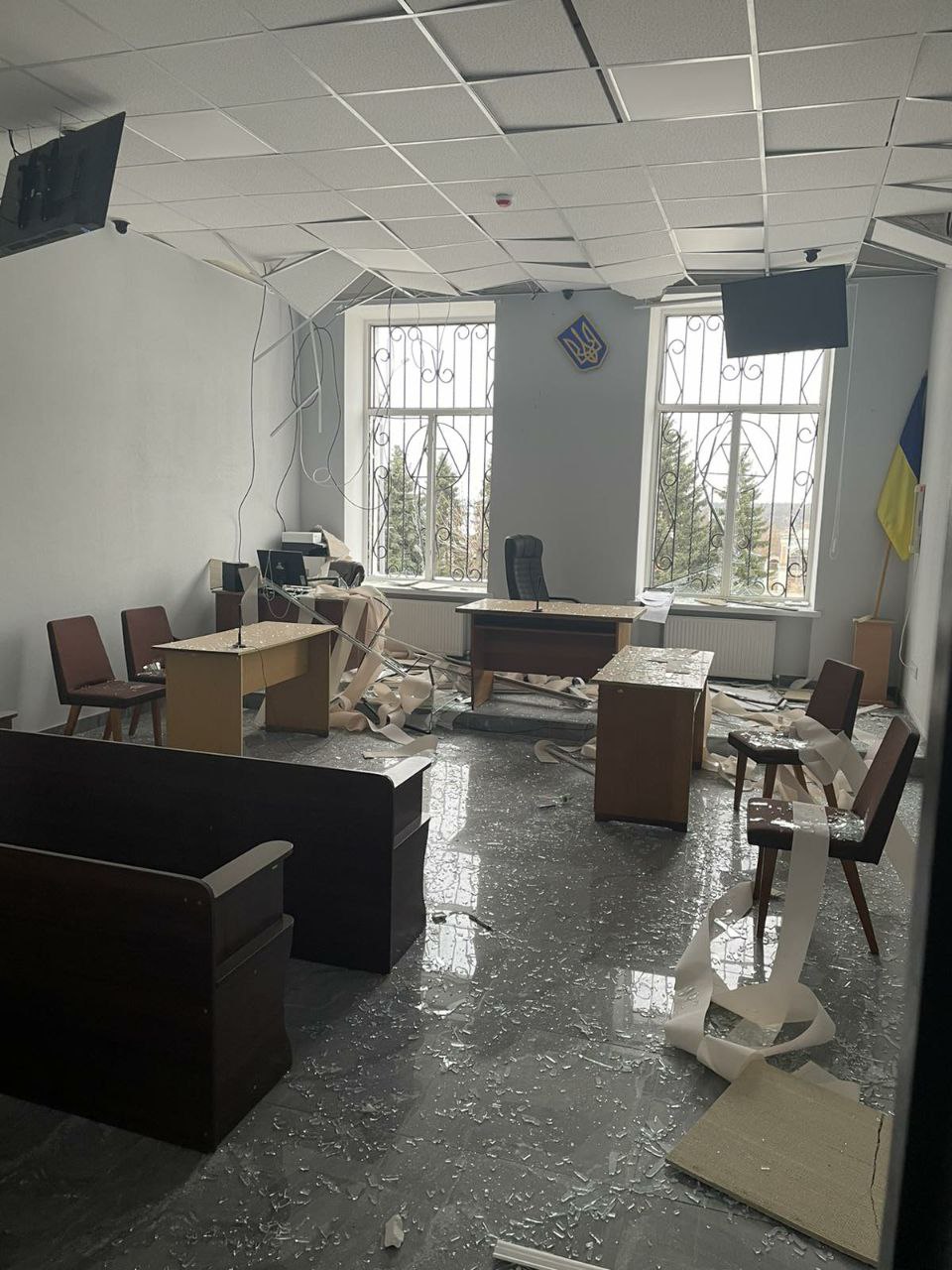 Власними силами та підручними засобами протягом березня прибрано кабінети, проведено демонтаж пошкоджених віконних конструкцій, дверей, внутрішнього оздоблення, закрито плівкою вікна.