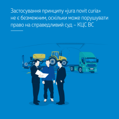 Отже, принцип «jura novit curia», з одного боку, підлягає безумовному застосуванню: суд зобов’язаний застосувати правильні норми права, перекваліфікувавши позов, незалежно від посилань позивача. З другого боку, перекваліфіковуючи позов за цим принципом, суд може порушити право на справедливий суд як щодо відповідача, так і щодо позивача. У таких умовах слід зважати на принцип змагальності та рівності сторін. Сторін не можна позбавляти права на аргументування своєї позиції й надання доказів в умовах нової кваліфікації судом правовідносин (рішення Європейського суду з прав людини від 14 січня 2021 року у справі «Гусєв проти України» (скарга № 25531/12)).