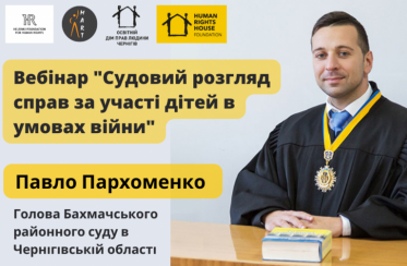 28 жовтня 2022 року голова Бахмацького районного суду Чернігівської області Павло Пархоменко провів вебінар на тему "Судовий розгляд справ за участі дітей в умовах війни", який був реалізований в рамках проекту «Права дитини та доступ до правосуддя в умовах воєнного стану» та втілений ГО МАРТ спільно із Гельсінським Фондом з Прав Людини (Варшава, Польща) у партнерстві з Освітній дім прав людини в Чернігові / Human Rights House in Chernihiv, Північна правозахисна група (Суми) та Черкаський правозахисний центр , за підтримки Human Rights House Foundation (Осло, Норвегія).