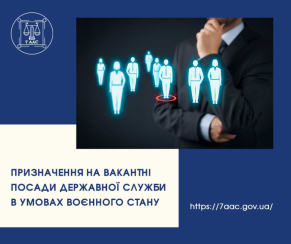 Наразі на посаду державної служби особи призначаються без конкурсного відбору, обов’язковість якого передбачена законом. Новий працівник може перебувати на посаді до призначення на цю посаду переможця конкурсу або до спливу 12 місячного строку після припинення чи скасування воєнного стану. Також важливо, що такі державні службовці, які призначені у період дії воєнного стану, не можуть бути переведені на інші посади державної служби.