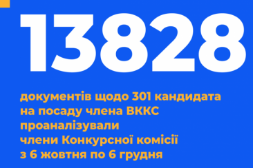 Нагадаємо, Конкурсна комісія створена з метою добору кандидатів на посади членів ВККСУ на засадах прозорого конкурсу. Конкурс відбувається на засадах верховенства права, професійності, публічності і політичної нейтральності у два у два етапи. На першому етапі за результатами розгляду поданих кандидатами документів, результатами спеціальної перевірки та відповідної інформації з відкритих джерел, буде с формований перелік кандидатів, допущених до співбесіди.