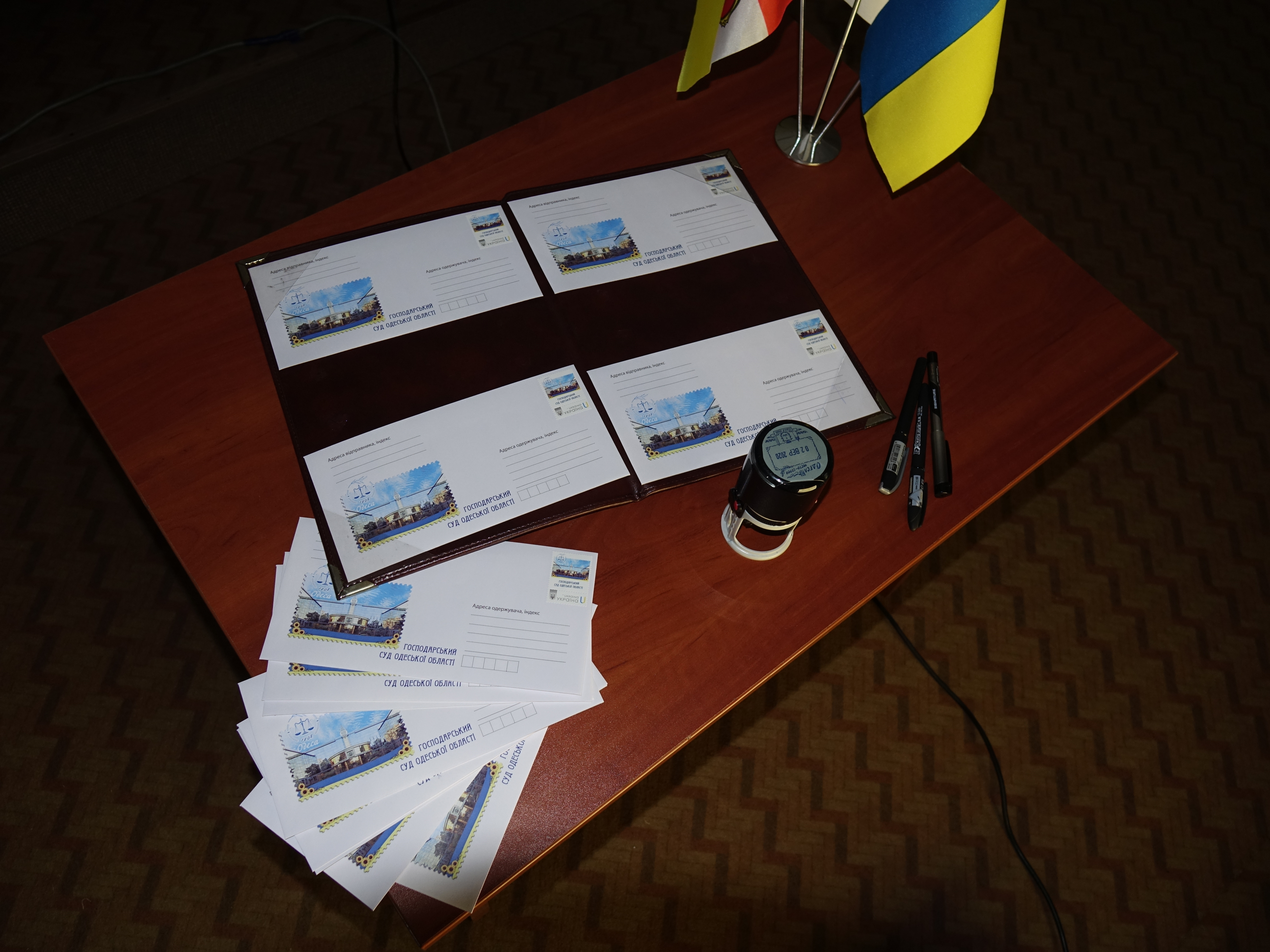 Разом з відзнакою співробітники отримали у подарунок марку й конверт Господарського суду Одеської області.
