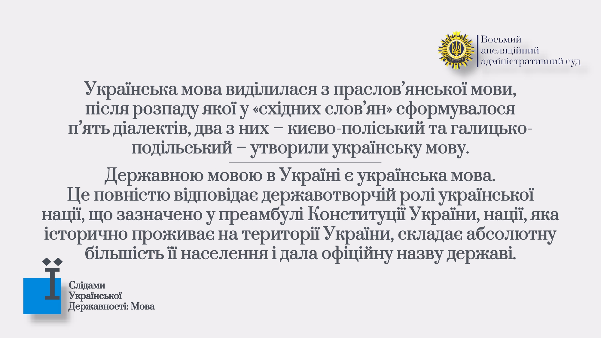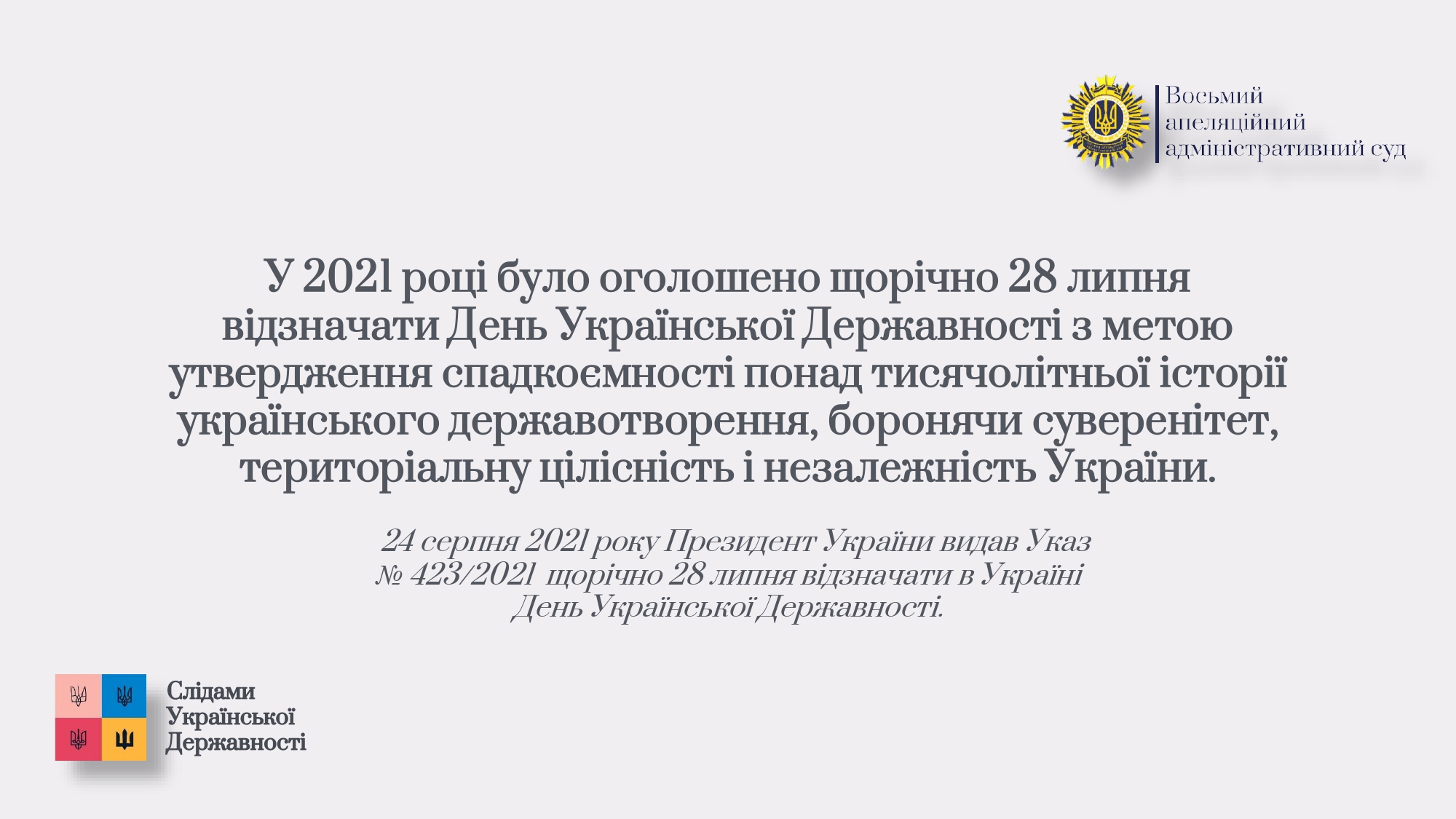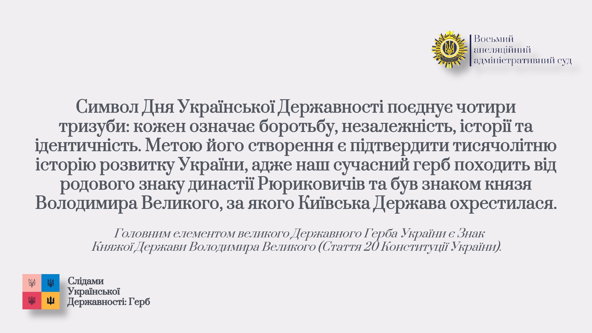 З цієї нагоди Восьмий ААС виокремив добірку атрибутів становлення української державності, серед яких мова, територія, збройні сили, грошова одиниця, прапор, гімн та герб.