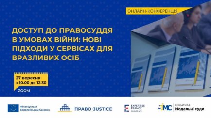 27 вересня 2023 року відбудеться конференція “Доступ до правосуддя в умовах війни: нові підходи у сервісах для вразливих осіб”.
