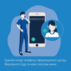 Громадяни, зателефонувавши на єдиний номер телефону інформаційного центру Верховного Суду (044) 591-10-00, мають змогу потрапити до нового голосового меню (IVR), за допомогою якого можна отримати інформацію про адреси Верховного Суду, сплату судового збору, ознайомлення з матеріалами справи, подачу документів до суду та ін.