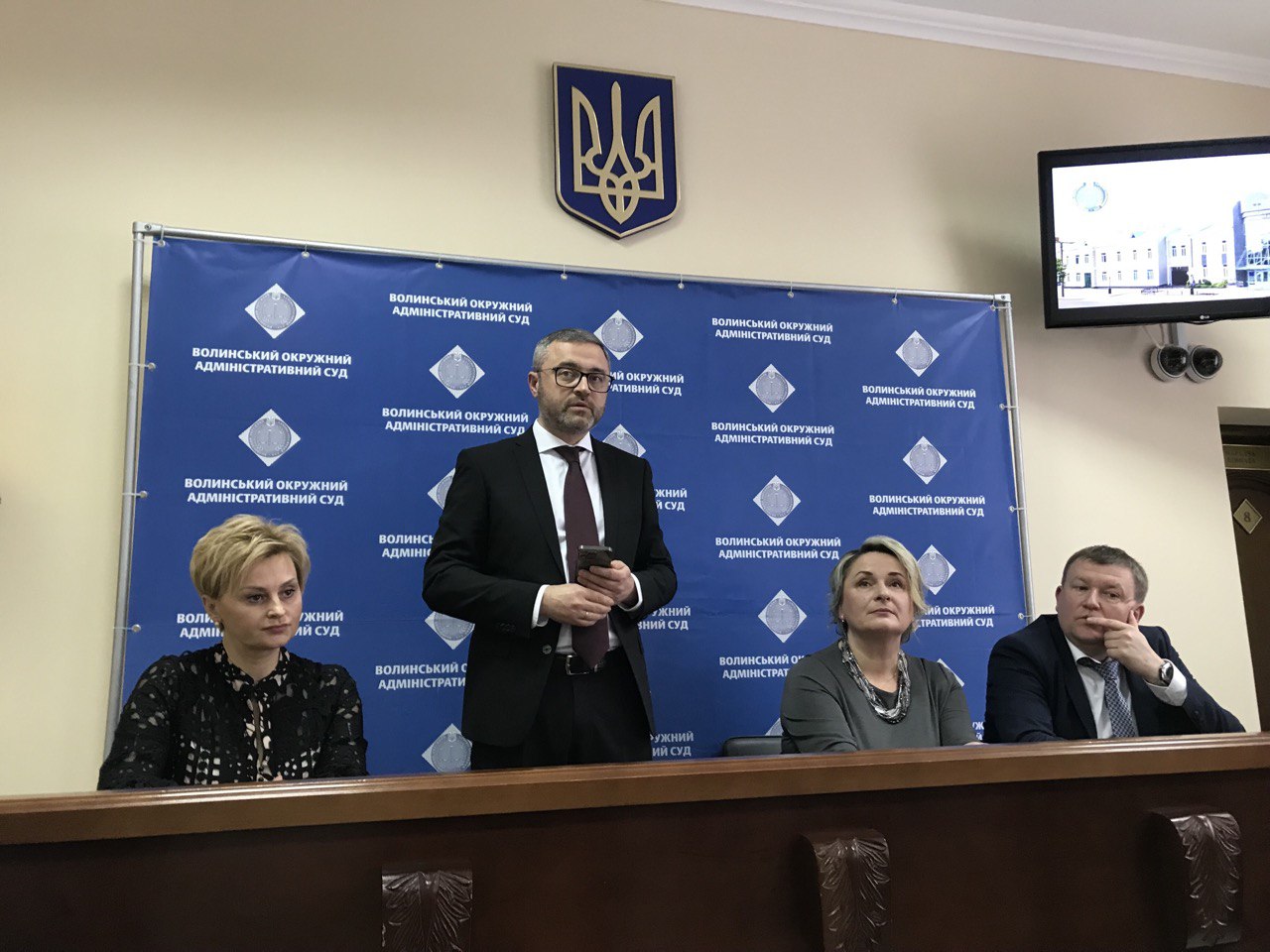 З вітальними словами до суддів та працівників апарату суду звернулись членкиня Вищої ради правосуддя Інна Плахтій, голова Касаційного адміністративного суду у складі Верховного Суду Михайло Смокович, голова Восьмого ААС Олег Заверуха та начальник Територіального управління Державної судової адміністрації України у Волинській області Наталія Коцирій.