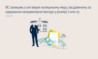 Вироком місцевого суду, залишеним без зміни апеляційним судом, колишнього мера засуджено за ч. 5 ст. 368 КК України (у редакції від 18 квітня 2013 року) до покарання у виді позбавлення волі на строк 9 років із позбавленням права обіймати посади, пов’язані з виконанням організаційно-розпорядчих та адміністративних функцій в органах місцевого самоврядування на строк 2 роки з конфіскацією майна.