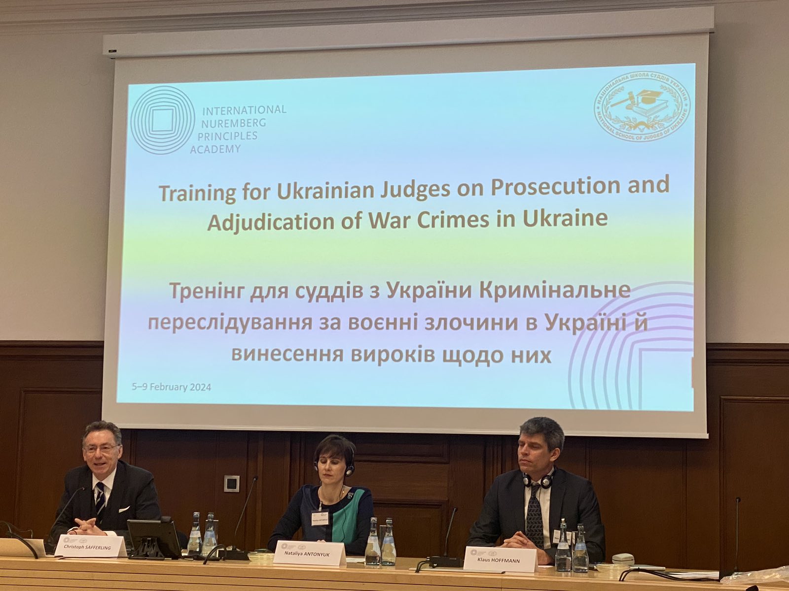Спікерами були директор Міжнародної академії Нюрнберзьких принципів, проф. д-р Крістоф Зафферлінг, провідна спеціалістка з навчання й підвищення кваліфікації Міжнародної академії Нюрнберзьких принципів Дарлін Седа та провідний спеціаліст із міжнародного кримінального права Міжнародної академії Нюрнберзьких принципів д-р Гурген Петросян.