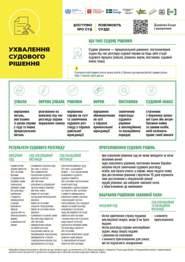 Що таке ухвалення судового рішення і які бувають результати судового розгляду - про все це у інфографіці.