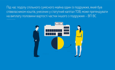 Тобто при поділі спільного сумісного майна один із подружжя може претендувати на виплату частки у статутному капіталі ТОВ, що є відмінним від виплати половини вартості внеску засновника у статутний капітал цього товариства.