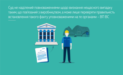 Повноваження з визнання нещасного випадку таким, що пов’язаний з виробництвом, належать до виключної компетенції комісії (спеціальної комісії) з розслідування нещасного випадку, і цей факт не може бути визнаний таким у судовому порядку.