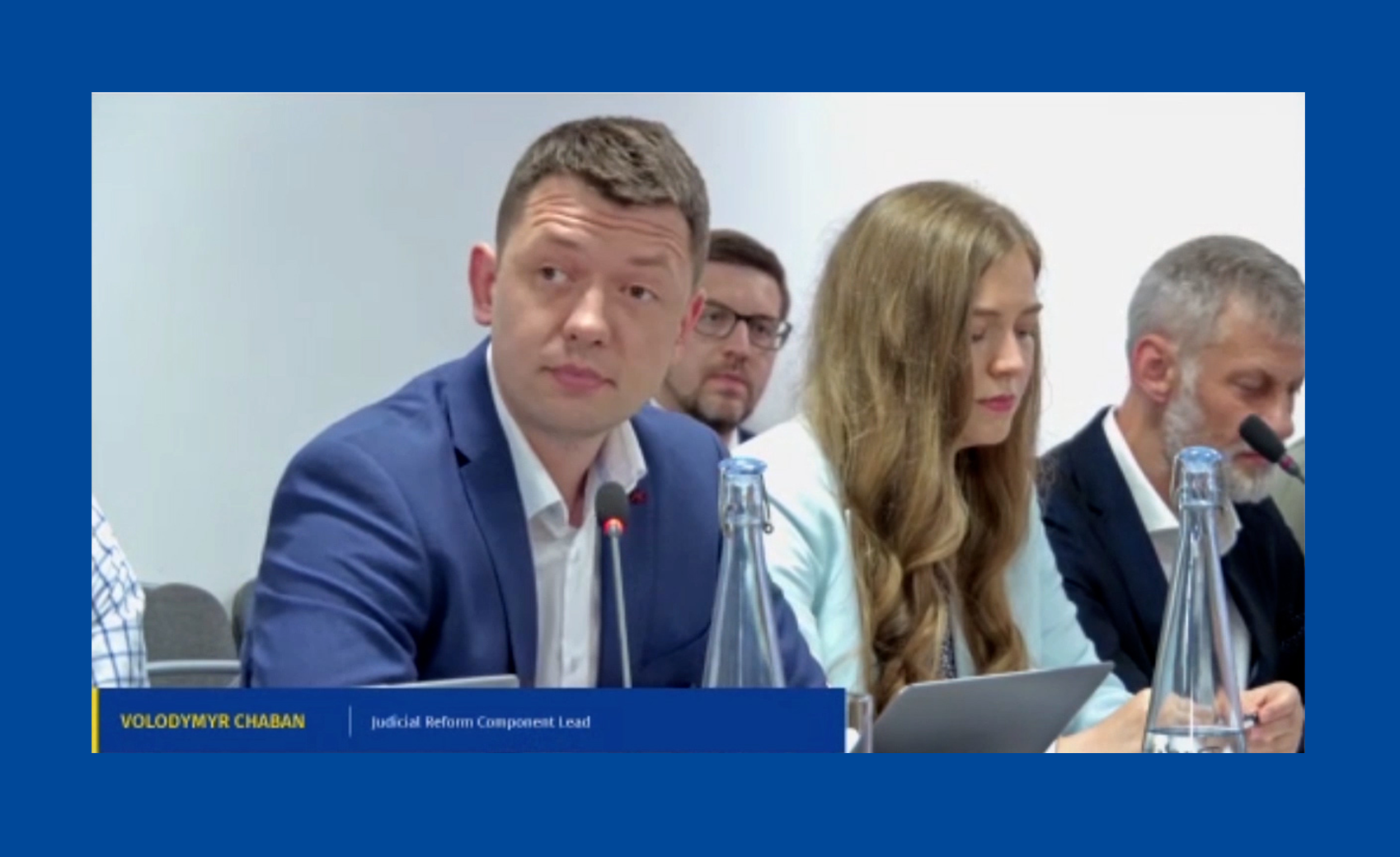 Заступниця Міністра юстиції з питань європейської інтеграції Людмила Сугак, Голова Верховного Суду Станіслав Кравченко, Голова Вищої ради правосуддя Григорій Усик, заступник Голови Комітету Верховної Ради України з питань правової політики Павло Павліш, т. в. о. Голови Державної судової адміністрації Максим Пампура, заступник Голови Державної судової адміністрації України з питань цифровізації Леонід Сапельников, заступниця Генерального прокурора Вікторія Літвінова, Голова Кваліфікаційно-дисциплінарної комісії прокурорів Андрій Гнатів, заступник Голови Комітету Верховної Ради України з економічного розвитку Олексій Мовчан, заступниця голови Фонду державного майна України Оксана Осьмачко, заступник Голови Асоціації приватних виконавців України Андрій Авторгов, Директор Координаційного центру з надання правничої допомоги Олександр Баранов.