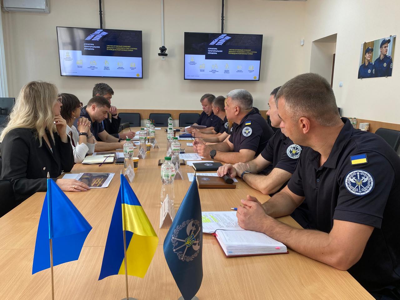 Під час зустрічі іноземних партнерів ознайомили із завданнями Служби на об’єктах органів та установ системи правосуддя, а також перспективами розвитку Служби.