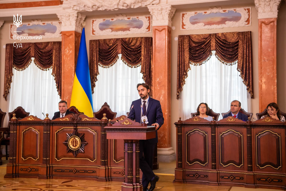Суддя Великої Палати Верховного Суду Олег Ткачук присвятив свій виступ питанням судового захисту права людей на відшкодування шкоди, заподіяної російською агресією.