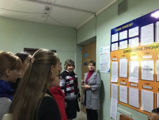 Під час оглядової екскурсії гостей було ознайомлено з роботою суду, яка розпочалося з канцелярії суду, де присутні дізналися про порядок реєстрації справ різних категорій, рух документів, що надходять до суду та порядку роботи з ними.
