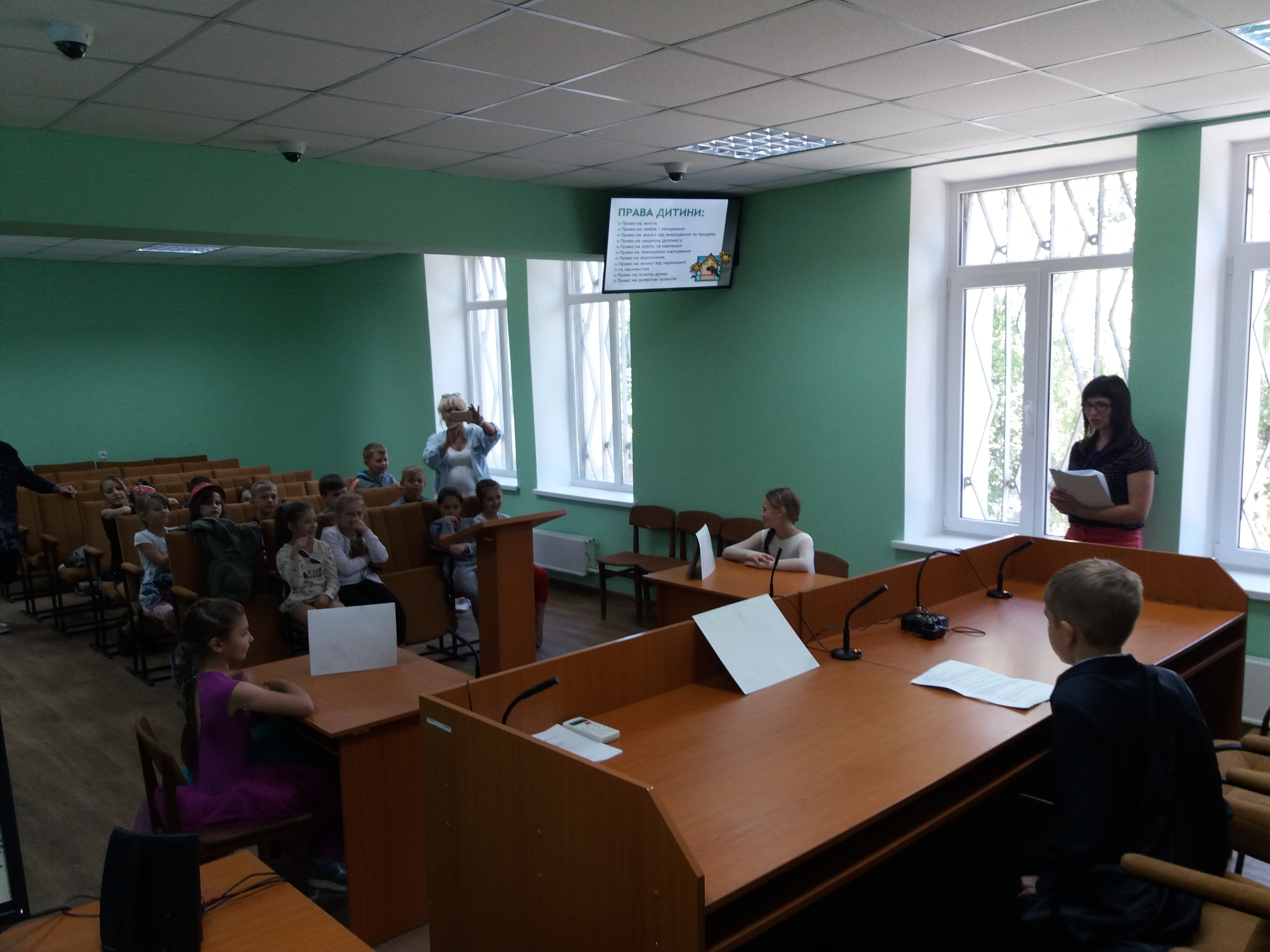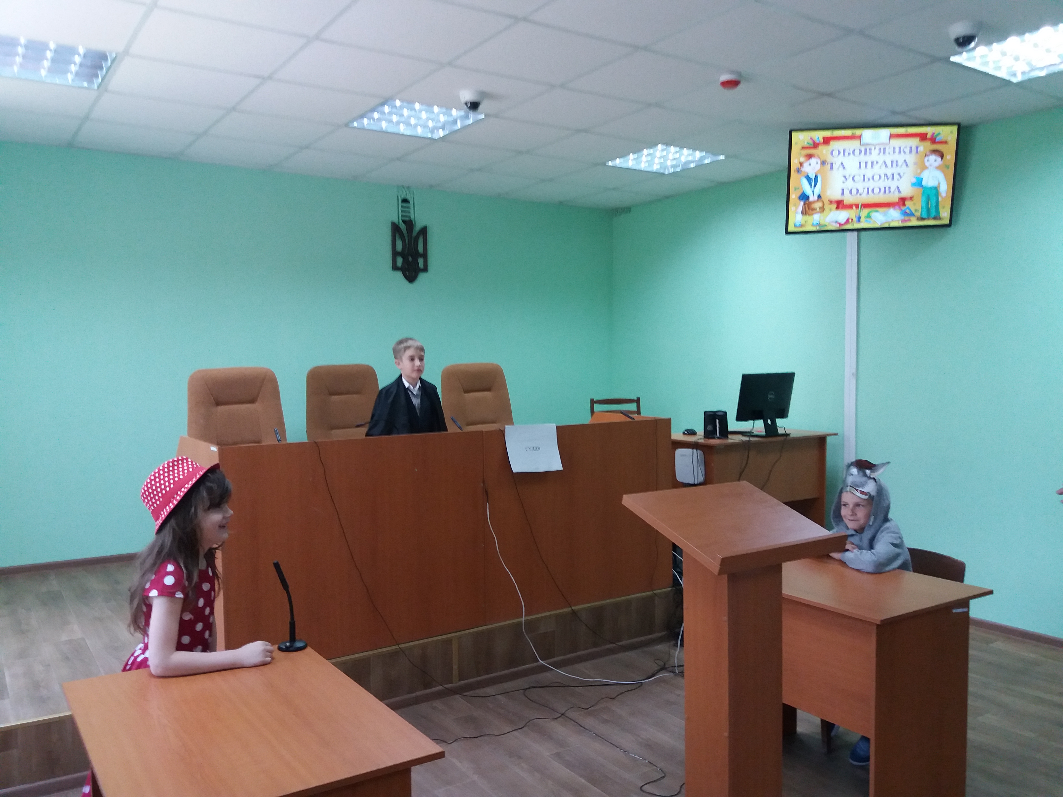 Заступник керівника апарату суду Вербицька Т.С. обговорила з дітьми тему: « Права та обов’язки дитини». Діти приймали активну участь в обговоренні та в сюжетно-рольових іграх «Судові справи»  («Червона Шапочка» та «Снігова Королева».) Учні відчули себе в ролі судді, позивача та відповідача. Потім разом із дітьми було обговорено, які були порушені права в сюжетах казок.