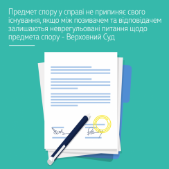 Залишаючи без змін постанову суду апеляційної інстанції Касаційний господарський суд у складі Верховного Суду (колегія суддів у складі: Булгакова І.В. – головуючий, Львов Б.Ю., Пільков К.М.) зазначив, що оскільки умови проекту договору в редакції позивача, який є предметом спору, відрізняються від умов укладеного сторонами договору, а також враховуючи, що товариство заперечило відсутність предмета спору у справі у зв'язку з укладенням договору, апеляційний господарський суд дійшов обґрунтованого висновку про те, що предмет спору у справі не припинив свого існування, оскільки між позивачем та відповідачем залишилися неврегульовані питання щодо предмета спору. Таким чином підстави для закриття провадження у справі на підставі п. 2 ч. 1 ст. 231 ГПК України – відсутні.