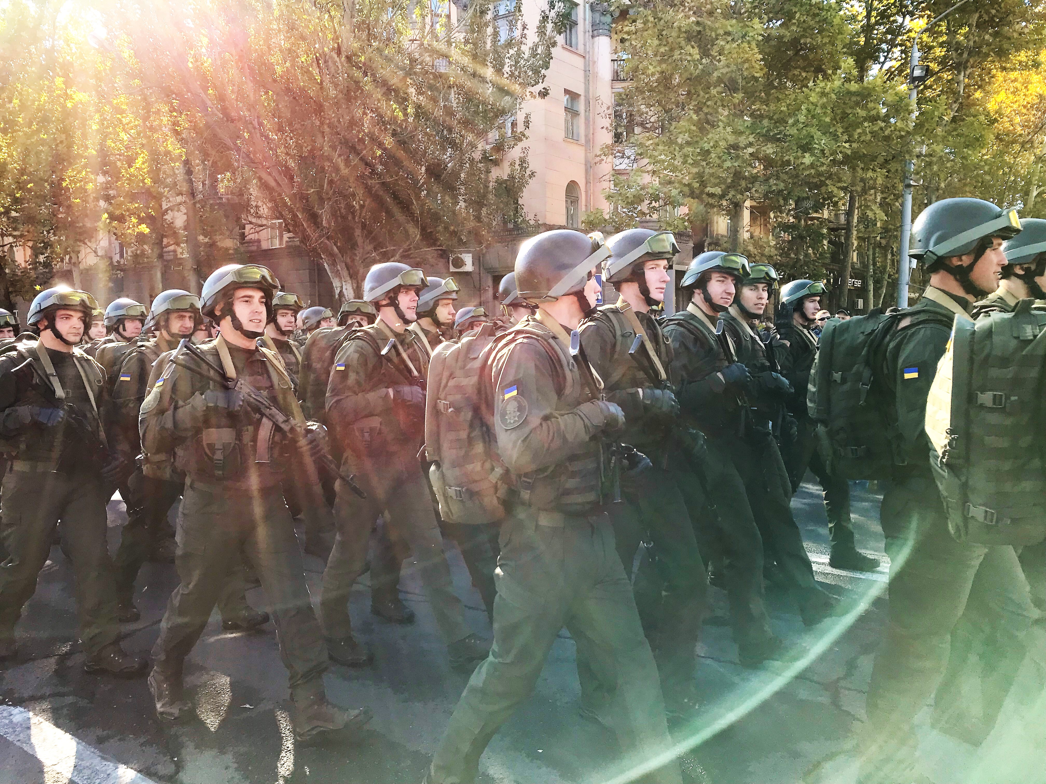 На площі зібралися близько тисячі військовослужбовців, які входять до складу військово-морських сил України, військових підрозділів, які дислокуються в Миколаєві, патрульної поліції Миколаєва, а також особовий склад ГУ ДСНС у Миколаївській області, військовослужбовці та працівники Миколаївського військового госпіталю, колона ветеранів АТО і представники козацького руху Миколаївській області.