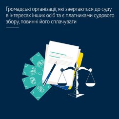 Верховний Суд у складі колегії судової палати дійшов висновку, що в разі звернення до суду Громадської організації в інтересах інших осіб, така Громадська організація в розумінні Закону «Про судовий збір» повинна сплатити судовий збір, тобто наявність чи відсутність підстав для сплати судового збору пов’язана не зі статусом громадської організації, яка діє в інтересах певної особи, а безпосередньо з цією особою – позивачем. Таким чином, з’ясуванню підлягають обставини наявності у такої особи обов'язку сплачувати судовий збір чи наявності підстав для звільнення, відстрочення чи розстрочення його сплати.