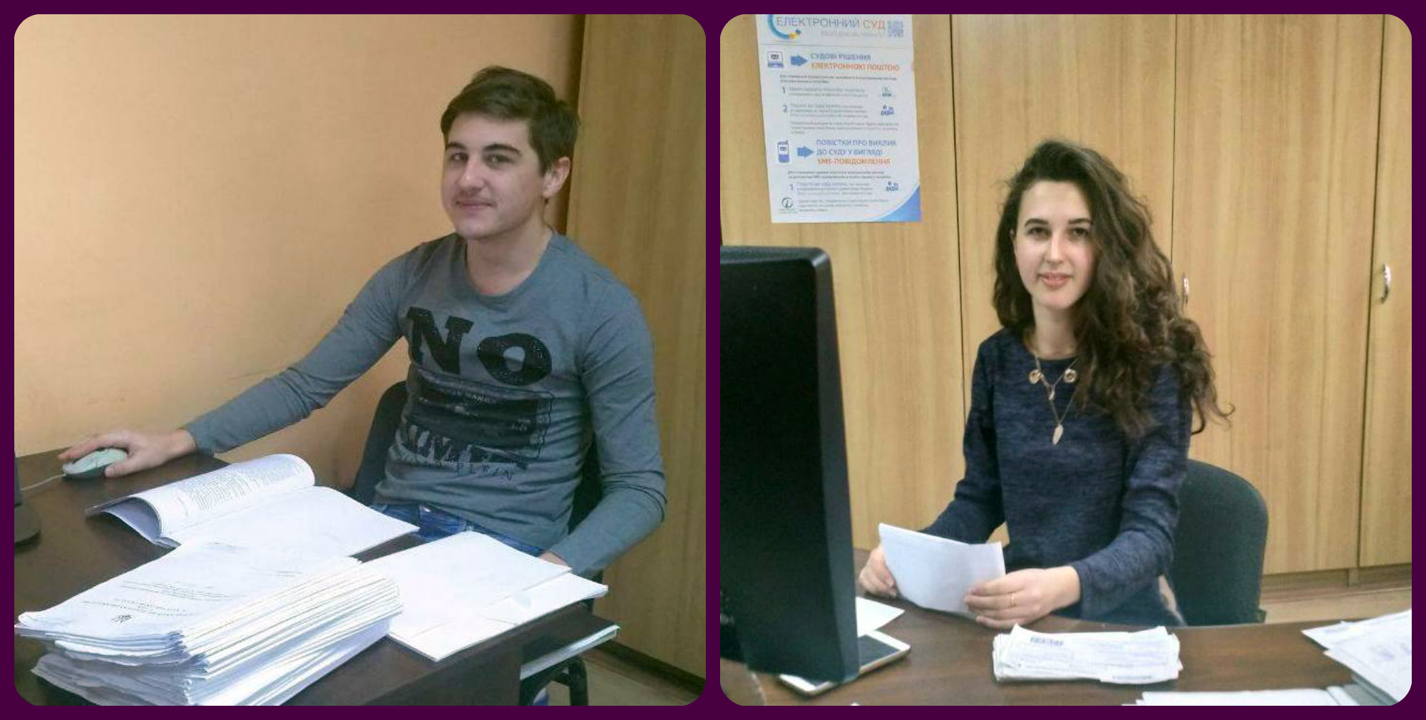Наразі, з 21 січня по 22 лютого, виробничу практику у суді проходять студенти Одеської юридичної академії Бараболя Дар’я та Присяжний Роман, які проявляють позитивне ставлення до роботи, цікавість, працьовитість та старанність.
