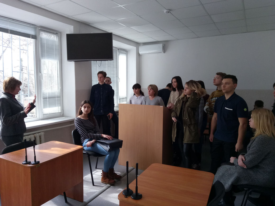 Керівник апарату суду Матвієнко Марія Богданівна провела екскурсію приміщенням суду, яка включала в себе огляд робочих кабінетів, залів судового засідання, конвойного приміщення, інформаційних стендів.