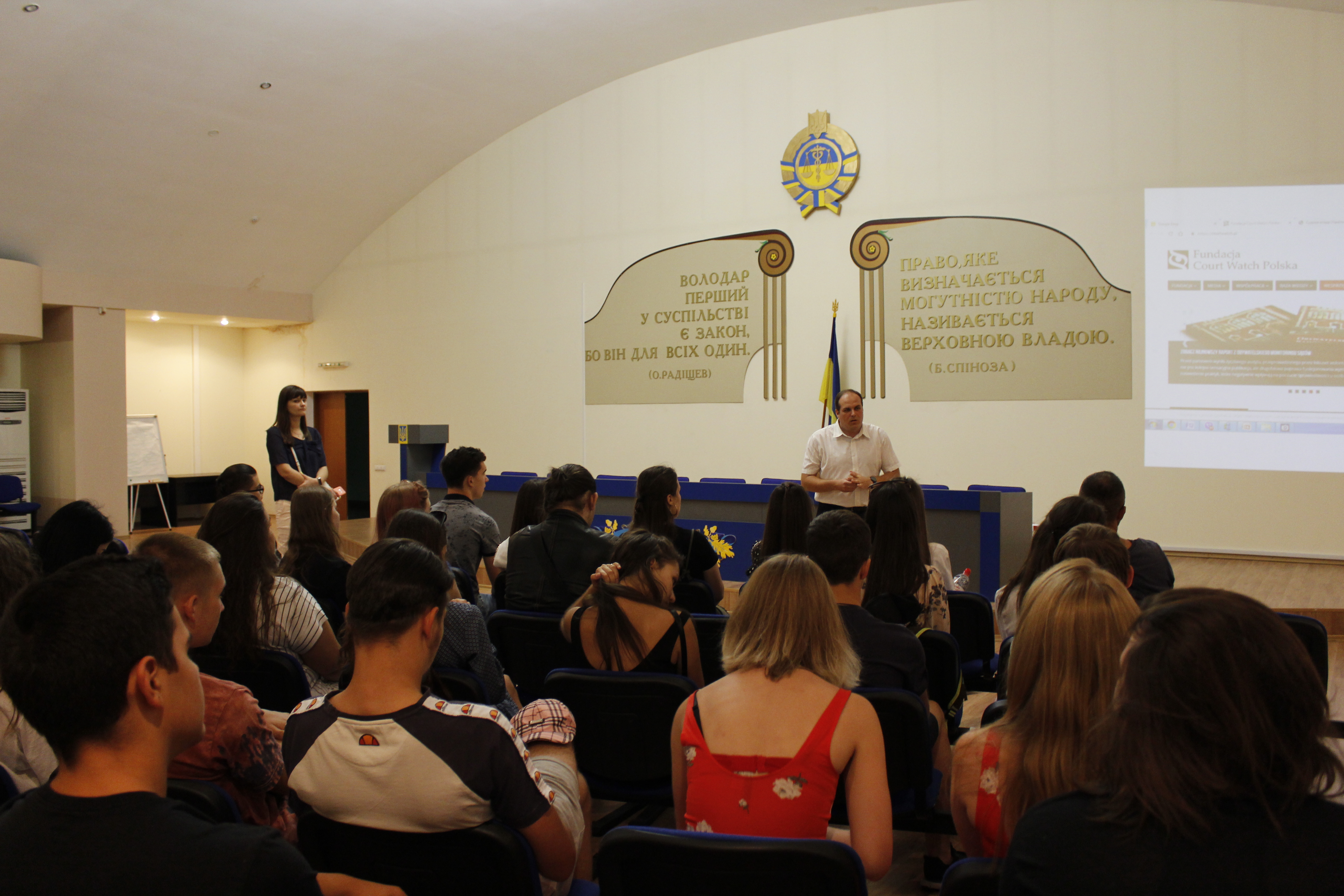 Польську делегацію привітала керівник апарату Господарського суду Сумської області Ольга Кулібаба, вона відзначила важливість співпраці судової установи із молоддю для реалізації інтелектуальної співпраці на міжнародному рівні, обміну досвідом та корисними напрацюваннями. Заступник керівника апарату суду Олександр Лебедь підготував презентацію по справам, які розглядаються в суді, розповів про особливість господарського процесу в Україні: що потрібно аби звернутися до суду, розмір судового збору, терміни розгляду справ тощо.